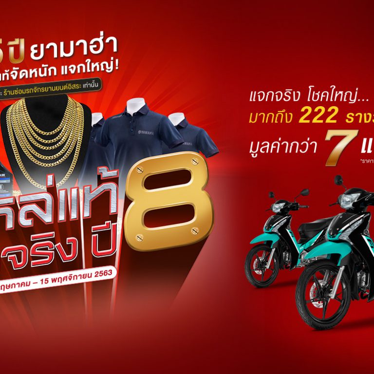 บริษัท ไทยยามาฮ่ามอเตอร์ จำกัด จัดแคมเปญ “อะไหล่แท้ แจกจริง ปี 8” ให้กับช่างซ่อมอิสระ เพื่อเป็นการส่งเสริมการจำหน่ายอะไหล่แท้ยามาฮ่าและน้ำมันเครื่องยามาลู้ป ให้เข้าถึงร้านซ่อมอิสระและเป็นการกระจายสินค้าให้ไปสู่ลูกค้าที่ใช้รถจักรยานยนต์ยามาฮ่ามากยิ่งขึ้น โดยผู้ที่เป็นเจ้าของร้านซ่อมรถจักรยานยนต์ ที่ซื้อผลิตภัณฑ์อะไหล่รถจักรยานยนต์,น้ำมันเครื่องยามาลู้ป,…