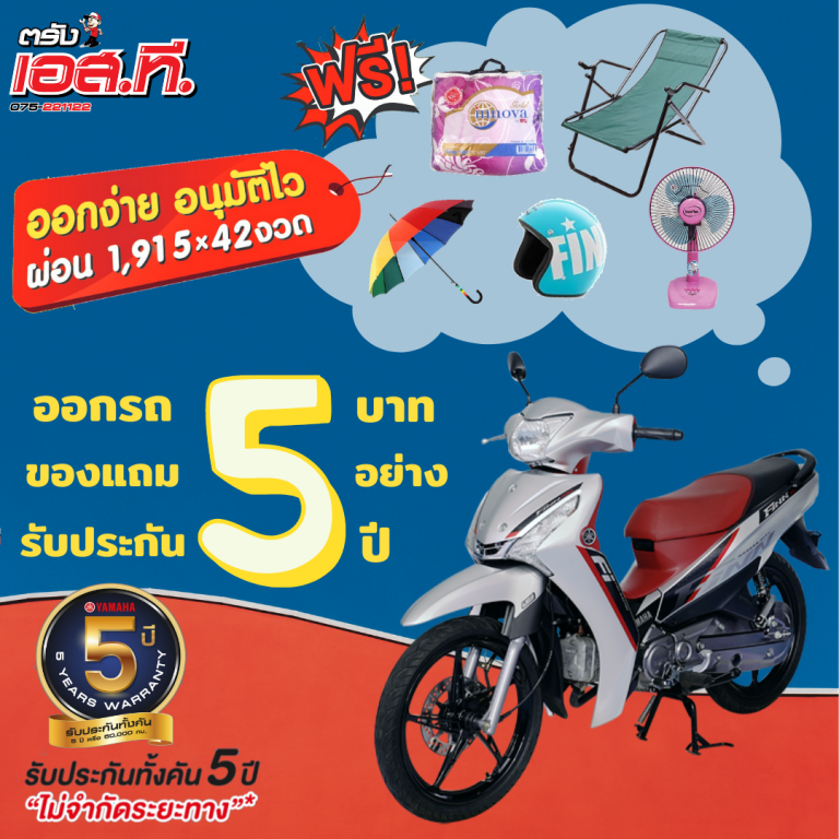 โปรดี เดือนมิถุนายน! #ตรังเอสที #ยามาฮ่าเมืองตรัง ฟินน์ 5 บาท #ออกรถได้เลย *ไม่ต้องค้ำ* #ฟรี…